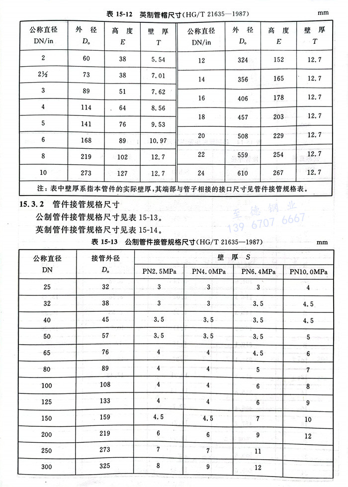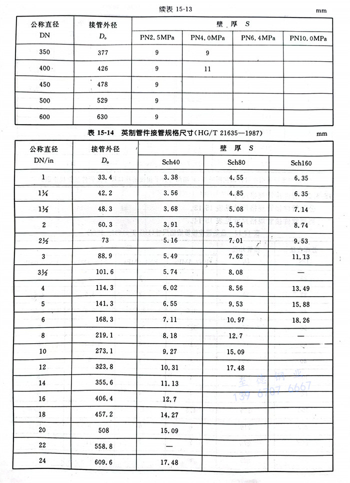 英(ying)制管件(jian)接管規格尺寸見表 15-14