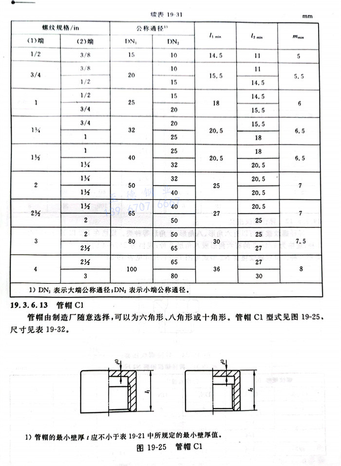 管帽由(you)制造廠隨意選擇,可以(yi)為六角形、八角形或十角形。管帽C1型(xing)式見(jian)圖19-25,尺寸見(jian)表(biao)19-32。