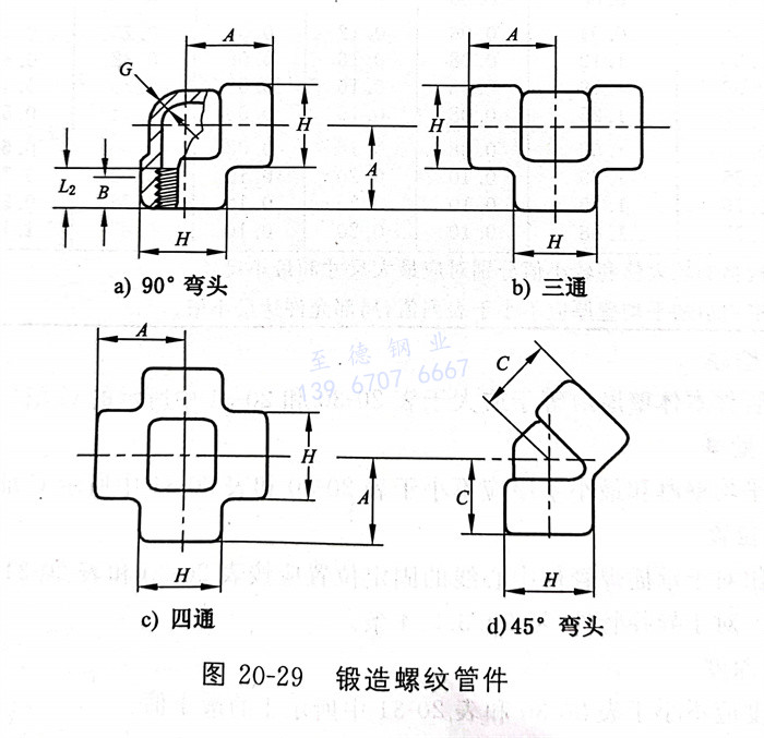 米制鍛造(zao)(zao)螺紋(wen)管件的型(xing)式見(jian)(jian)圖20-29,尺(chi)寸見(jian)(jian)表20-32;英制鍛造(zao)(zao)螺紋(wen)管件的型(xing)式見(jian)(jian)圖20-29,尺(chi)寸見(jian)(jian)20-33。