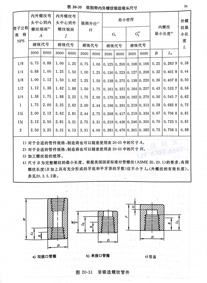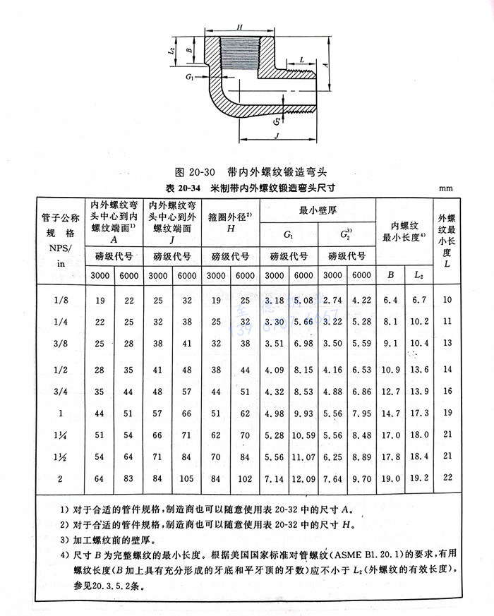 米(mi)制(zhi)帶(dai)(dai)內外(wai)螺紋的鍛造(zao)彎(wan)頭(tou)型式見圖20-30,尺寸(cun)(cun)見表20-34;英(ying)制(zhi)帶(dai)(dai)內外(wai)螺紋的鍛造(zao)彎(wan)頭(tou)型式見圖20-30,尺寸(cun)(cun)見表20-35。