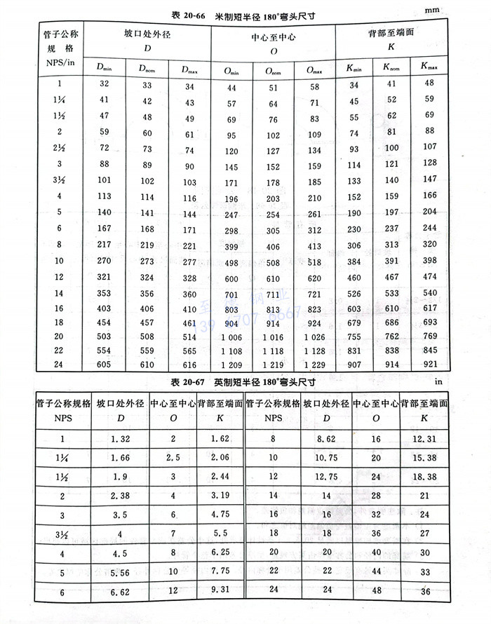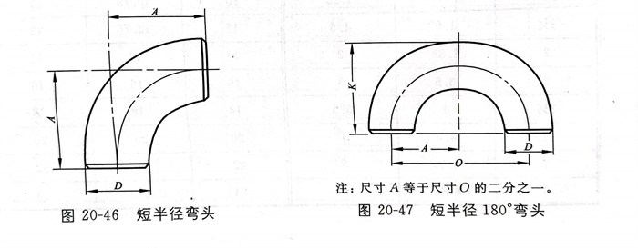 米制短半徑(jing)180°彎(wan)頭(tou)的型式(shi)見圖(tu)20-47,尺寸見表20-66;英制短半徑(jing)180°彎(wan)頭(tou)型式(shi)見圖(tu)20-47,尺寸見表20-67。