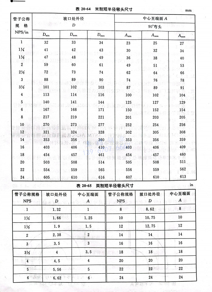 表20-64~表20-69中(zhong)管(guan)件的(de)規格采用ANSI/ASME B36.10《焊接(jie)和無縫軋制鋼管(guan)》定(ding)義的(de)管(guan)子公稱規格(NPS)表示(shi)。