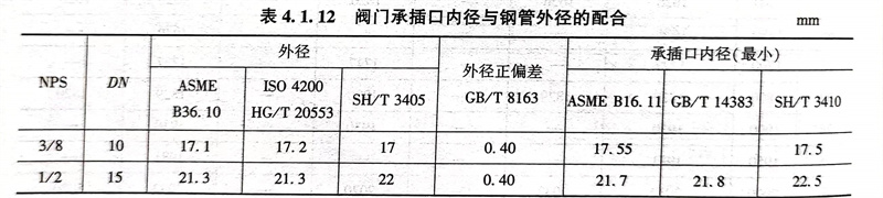 ①. 承(cheng)插管件(jian),閥門承(cheng)插口內(nei)徑與鋼管外徑的配(pei)合見(jian)表(biao)4.1.12;