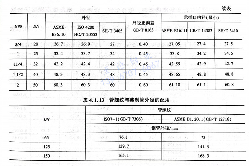 ②. 螺紋(wen)管件,閥門(men)的螺紋(wen)型式(shi)(NPT、R、Rc、Rp)與鋼管外徑的配合見(jian)表4.1.13。