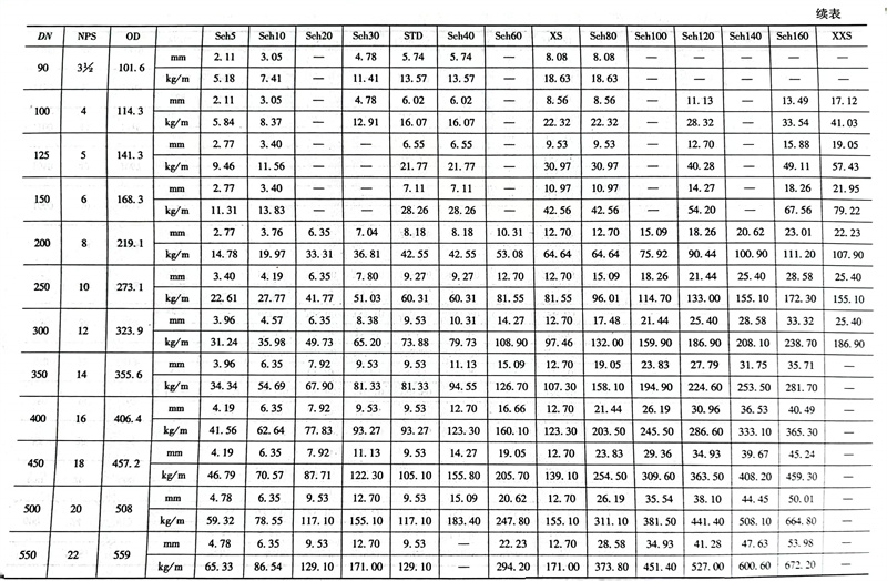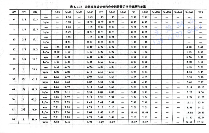 根據(ju)ASME B36.10,常用美標碳(tan)鋼管(guan)和合金鋼管(guan)管(guan)的外(wai)徑壁厚和單重見表4.1.17。