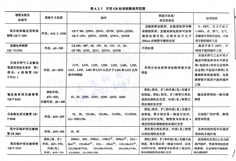 (13)除產品標準明確規定(ding)(ding),并經設計確認可用(yong)于壓力(li)、溫度參(can)數較高或特定(ding)(ding)條件(jian)外,焊(han)接鋼管宜按下列(lie)規定(ding)(ding)選用(yong):