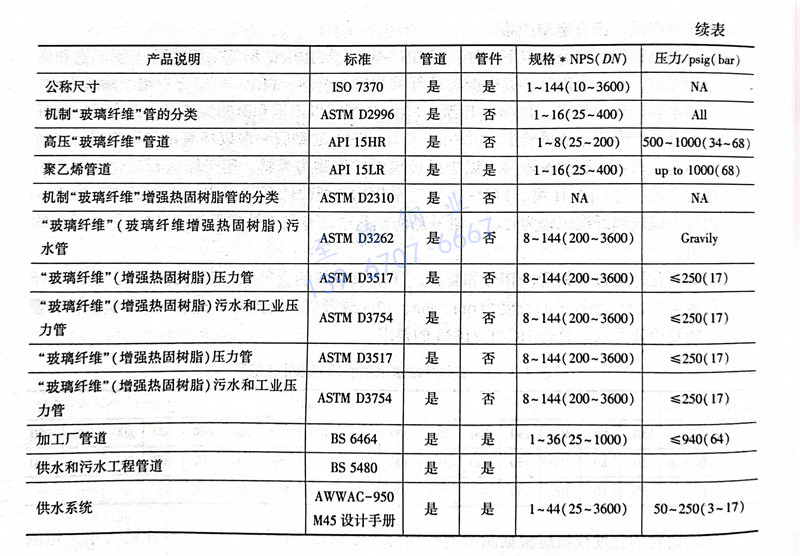 表4.3.23 石化標準(zhun)玻璃鋼(gang)管的公稱(cheng)外徑范圍(wei)