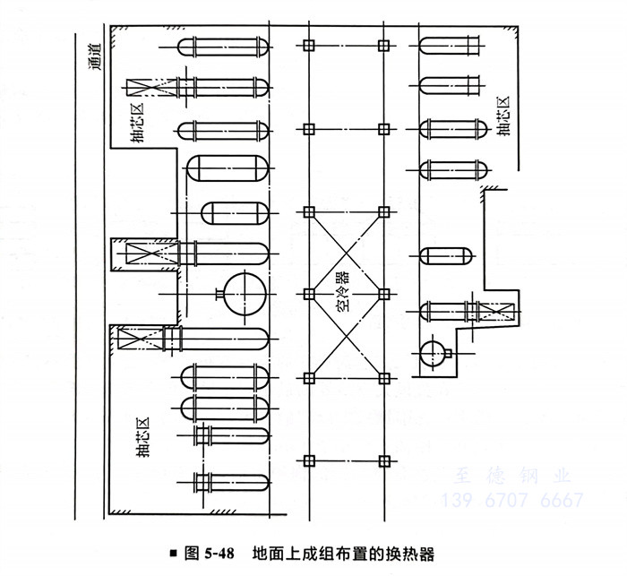 5.空冷器構(gou)架支柱(zhu)的(de)間距,應與(yu)管廊或框(kuang)架跨(kua)距相一(yi)致(zhi)。
