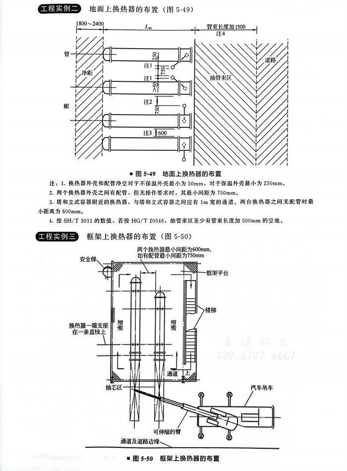 注:1. 空冷器管束的(de)長度(du)可以大(da)于支柱的(de)跨(kua)距,但最(zui)大(da)的(de)外伸(shen)長度(du)應在1m以內。