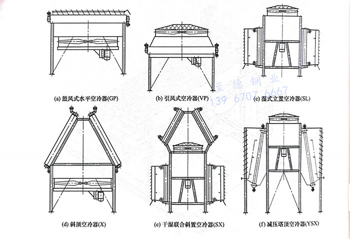 ①. 按空(kong)(kong)(kong)冷(leng)(leng)器(qi)(qi)管束布置形式(shi)(shi)(shi)分類:水平式(shi)(shi)(shi)全冷(leng)(leng)器(qi)(qi);斜頂式(shi)(shi)(shi)空(kong)(kong)(kong)冷(leng)(leng)器(qi)(qi);立式(shi)(shi)(shi)空(kong)(kong)(kong)冷(leng)(leng)器(qi)(qi);圓環式(shi)(shi)(shi)空(kong)(kong)(kong)冷(leng)(leng)器(qi)(qi)。