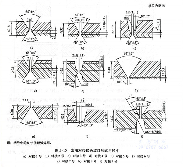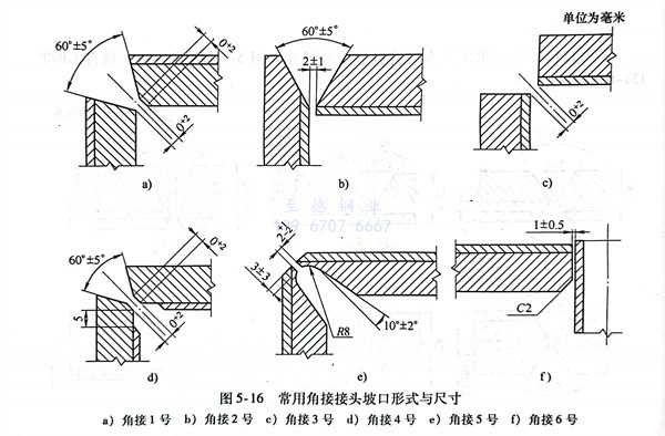 常用對接接頭和角接接頭的坡口形式及尺寸如圖 5-15 和 圖 5-16 (摘自GB/T 13148-2008)所示。