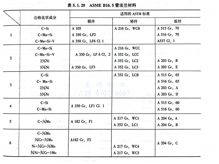 4. ASME B16.5管法蘭材料見(jian)表(biao)5.1.20