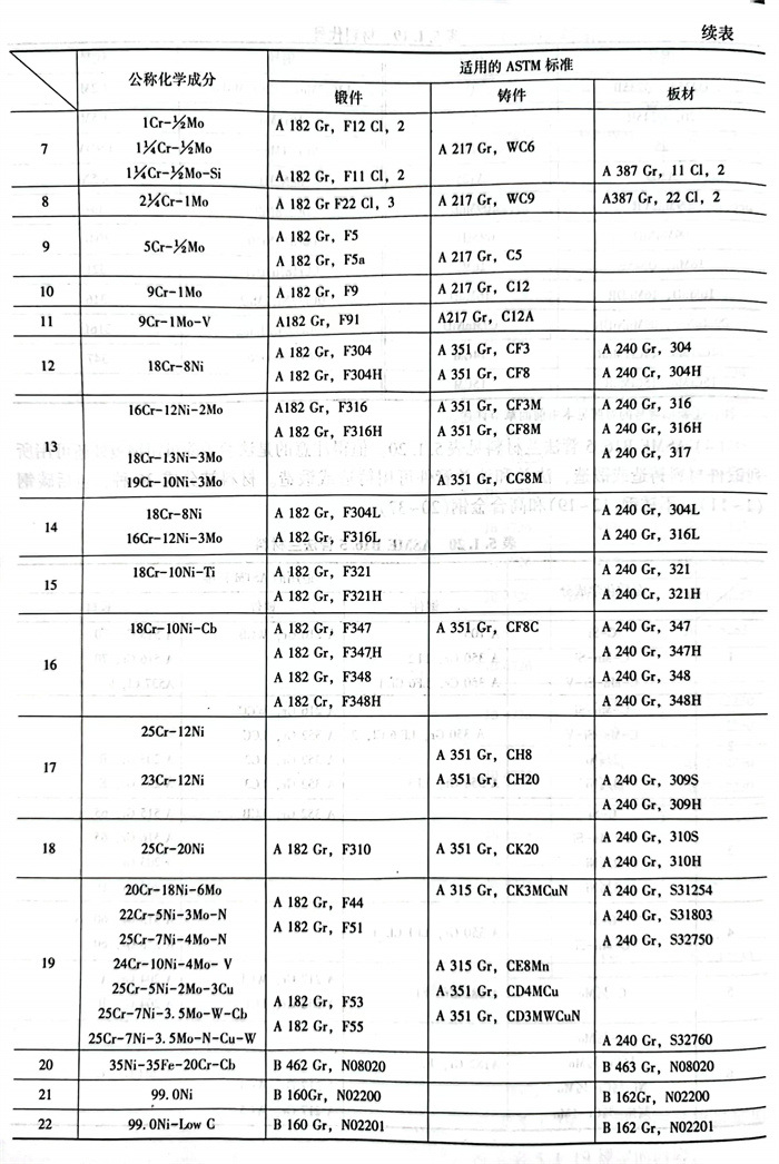 值得注意的是法(fa)(fa)(fa)蘭蓋(gai)除(chu)可(ke)用鋼(gang)板外還(huan)可(ke)用所列鍛件材料鑄造或(huo)鍛造,法(fa)(fa)(fa)蘭和(he)法(fa)(fa)(fa)蘭管(guan)件可(ke)用鑄造或(huo)鍛造。材料被分成36種,包括碳鋼(gang)(1~11),不銹(xiu)鋼(gang)(12~19)和(he)高(gao)合金鋼(gang)(20~37)。