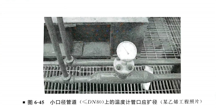 ⑥. 對于(yu)有分支的(de)工(gong)藝管(guan)道,安裝(zhuang)(zhuang)溫(wen)度(du)計(ji)或熱(re)電偶時(shi),要特別注意安裝(zhuang)(zhuang)位置(zhi)與工(gong)藝流程相(xiang)符,且不能安裝(zhuang)(zhuang)在工(gong)藝管(guan)道的(de)死角、盲(mang)腸位置(zhi)。熱(re)電偶溫(wen)度(du)計(ji)接口應(ying)設在兩個(ge)或兩個(ge)以上進入流體相(xiang)遇點的(de)下游至少8倍(bei)管(guan)徑處。但在8倍(bei)管(guan)徑內(nei)允許有安全閥及放空的(de)接管(guan)(圖(tu)6-47)。