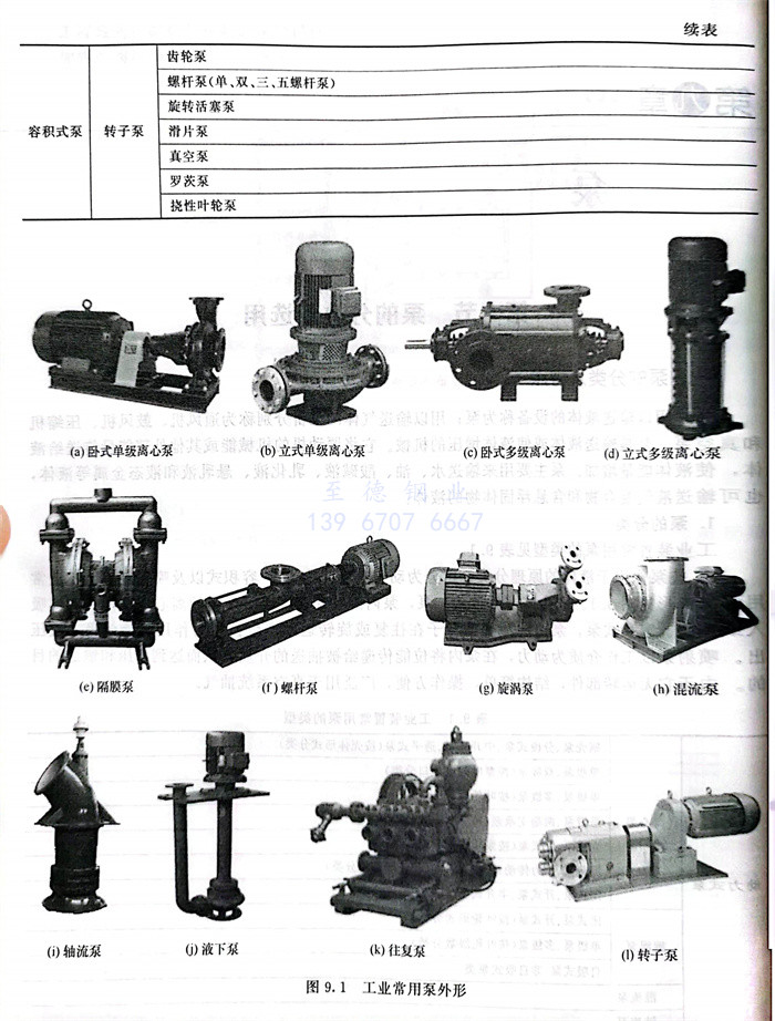 可分為(wei)動力(li)(li)(li)式(葉片式)、容(rong)積(ji)式以及噴射(she)泵(beng)(beng)等(deng)。工業常用(yong)泵(beng)(beng)的(de)外形見圖9.1。動力(li)(li)(li)式(葉片式)泵(beng)(beng),泵(beng)(beng)內的(de)葉片在旋轉(zhuan)時產生(sheng)(sheng)的(de)離心力(li)(li)(li)作用(yong)將液(ye)(ye)體(ti)吸(xi)人(ren)或壓出。容(rong)積(ji)式泵(beng)(beng),泵(beng)(beng)內的(de)活塞或轉(zhuan)子在往(wang)復或旋轉(zhuan)運(yun)動產生(sheng)(sheng)擠(ji)壓力(li)(li)(li)作用(yong)將液(ye)(ye)體(ti)吸(xi)入(ru)或壓出。噴射(she)泵(beng)(beng)以工作介(jie)(jie)質為(wei)動力(li)(li)(li),在泵(beng)(beng)內將位能傳遞給(gei)被抽送(song)的(de)介(jie)(jie)質,從(cong)而(er)達到增壓和(he)輸送(song)的(de)目的(de)。由(you)于它無運(yun)轉(zhuan)部(bu)件,結構簡單,操作方便,廣(guang)泛用(yong)于真空系統抽氣。