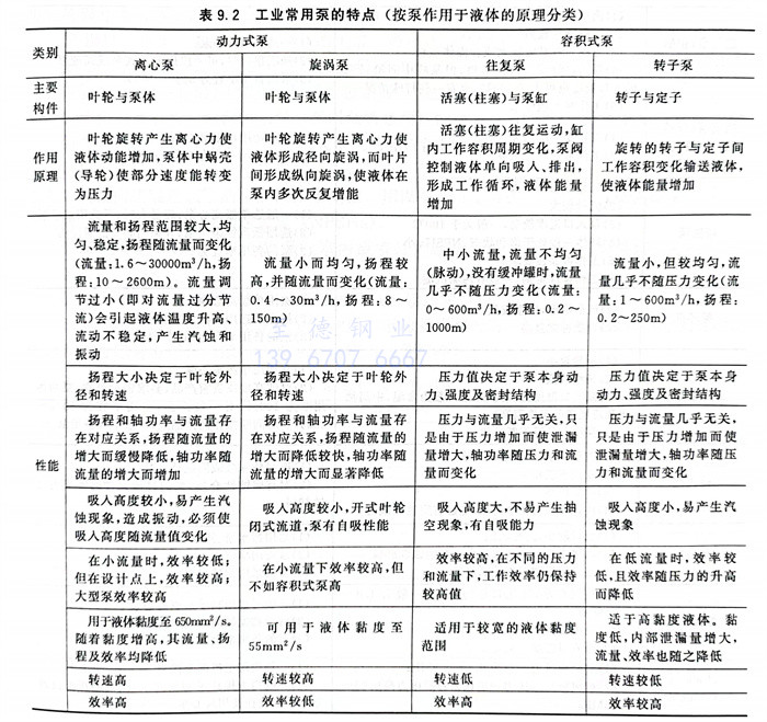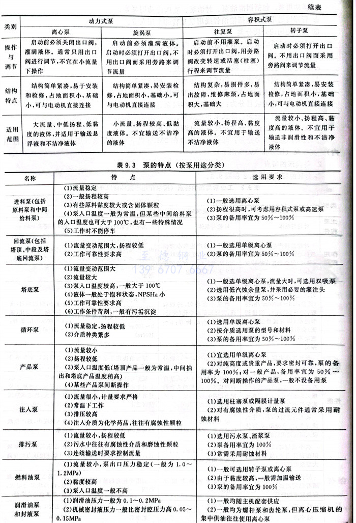 各(ge)類泵(beng)的特點見(jian)表(biao)9.2和表(biao)9.3。