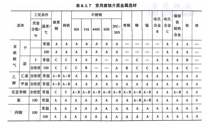 常用腐蝕(shi)介質金屬選材見表8.1.7。
