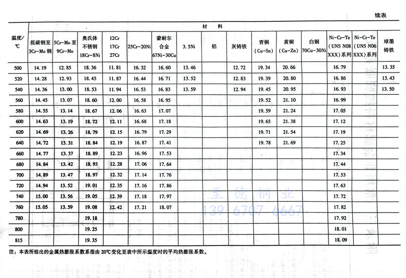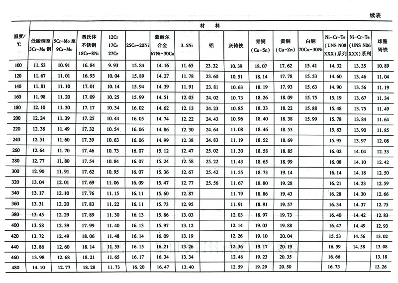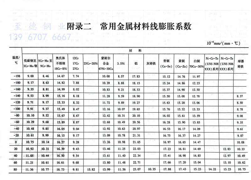 常用金屬材(cai)料線膨脹系數參照表(biao)