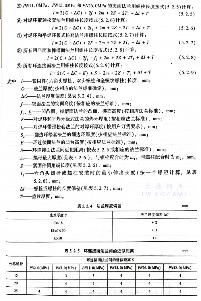 ④. PN15.0MPa和PN26.0MPa以外的突面法蘭(lan)用螺柱長度按(an)式5.2.4)計算。