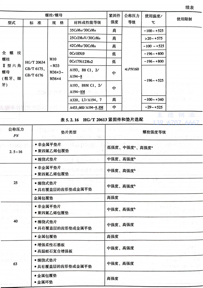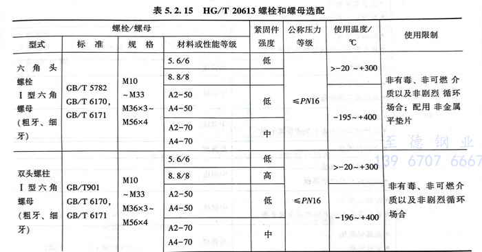 2. 緊固件的型式及使用壓力和溫度范圍、緊固件材料的強度等級按HG/T 20613(PN系列)和HG/T 20634(Class系列)60規定。