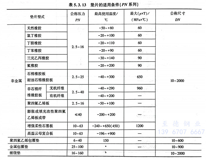 注:a. 各種(zhong)天然橡膠及合成橡膠使用溫度范圍不(bu)同,詳HG/T 20606。