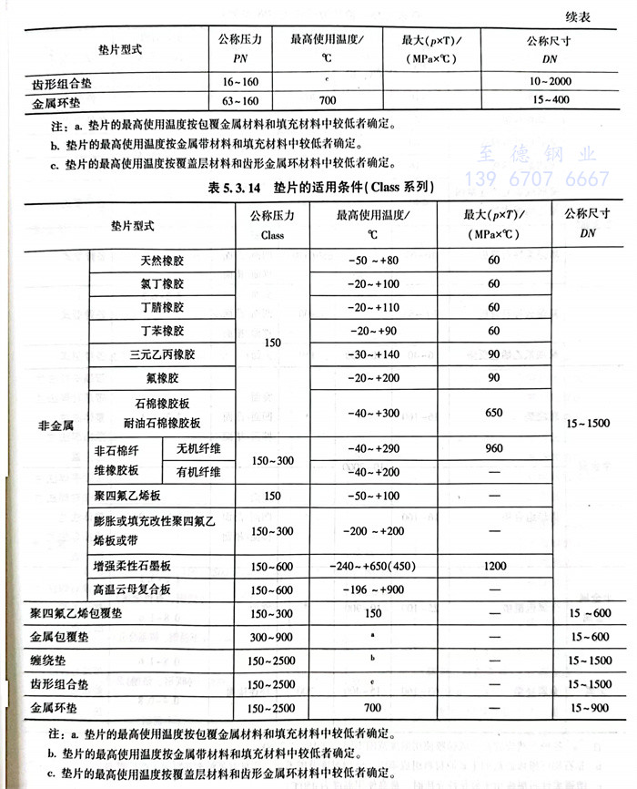 墊(dian)片的適用條件見(jian)表5.3.13、表5.3.14。