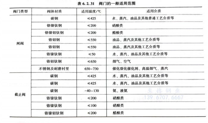 1. 閥門的一般適用范(fan)圍,見表6.2.31。