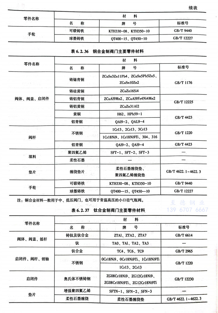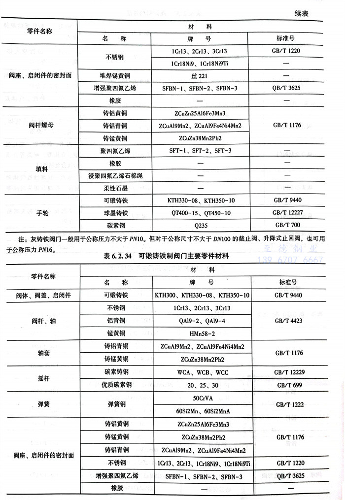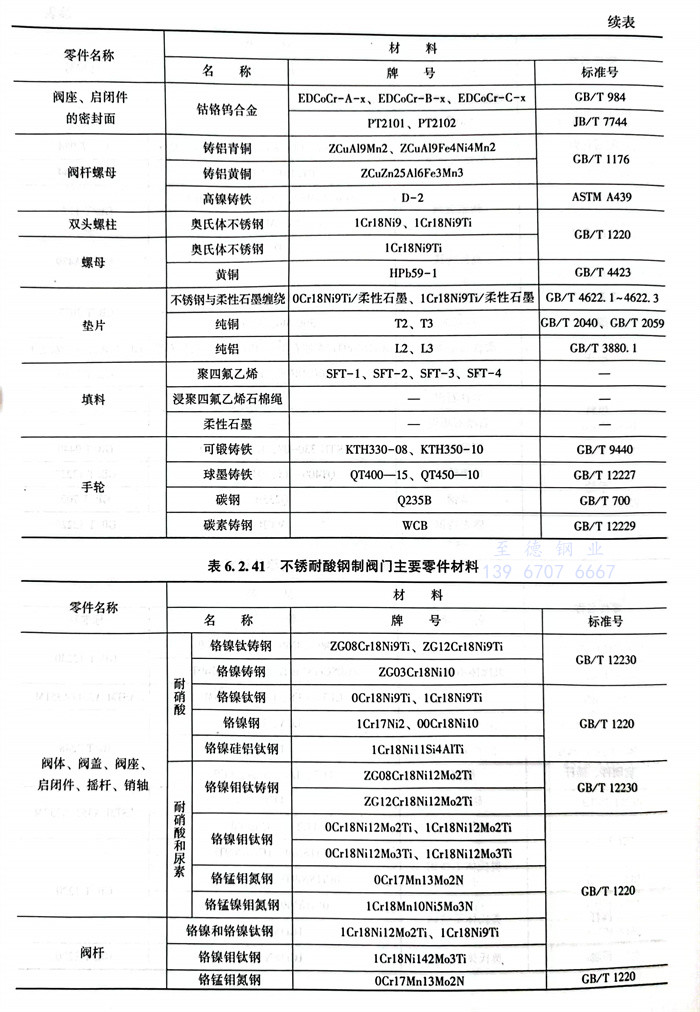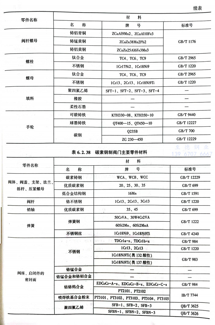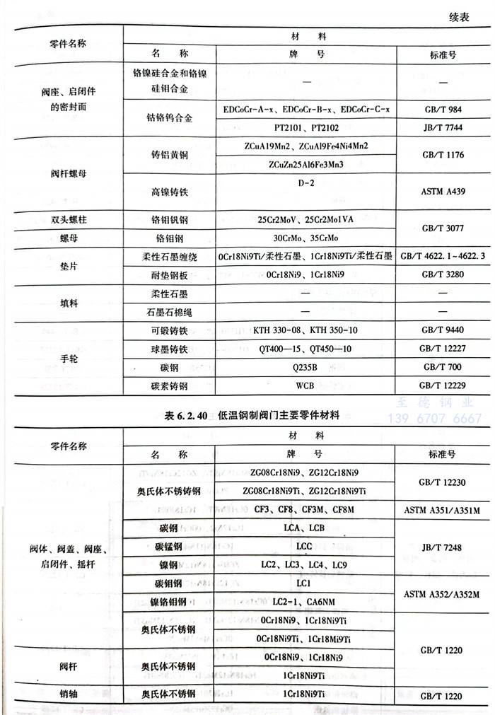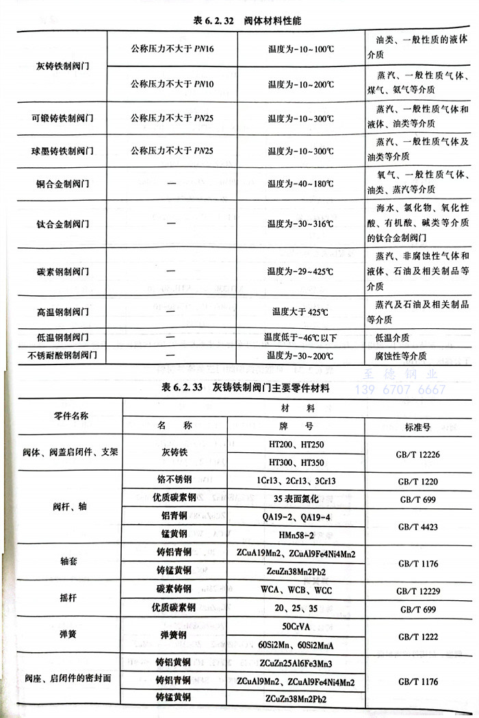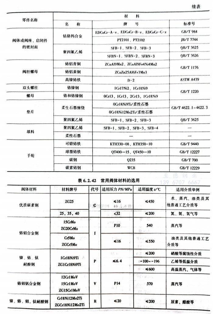 常(chang)用閥(fa)體材料(liao)的(de)選用主要(yao)依據JB/T5300。見表6.2.32~表6.2.42。