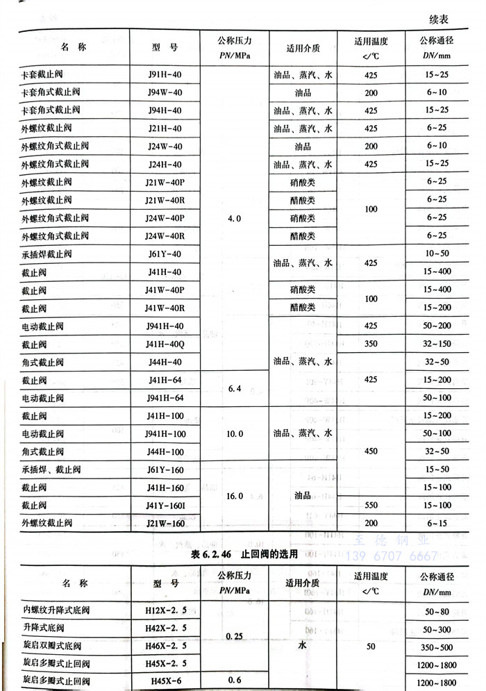 5. GB標(biao)準閥門選(xuan)用見表(biao)6.2.53。