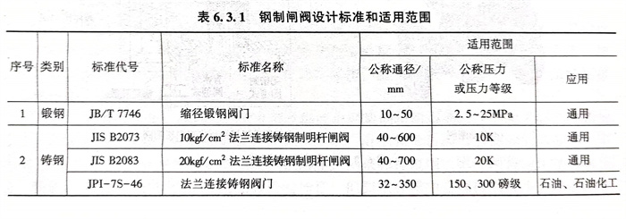 1. 鋼制閘(zha)閥設計標準和(he)適用范圍,見表(biao)6.3.1。
