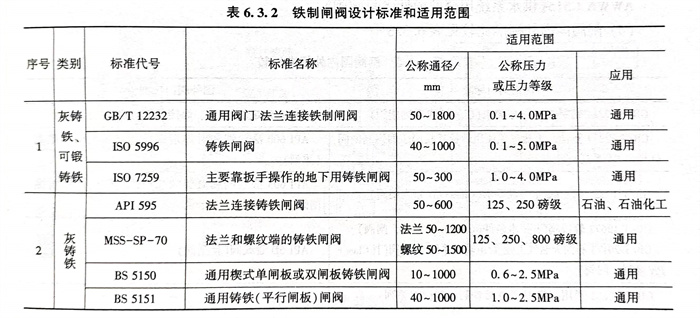 2. 鐵制(zhi)閘閥(fa)設計標準和適用范圍,見表6.3.2。