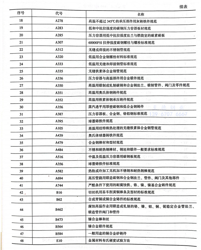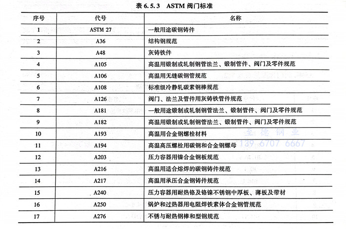 美國材(cai)料實驗協會 ASTM 閥門標準見表6.5.3。