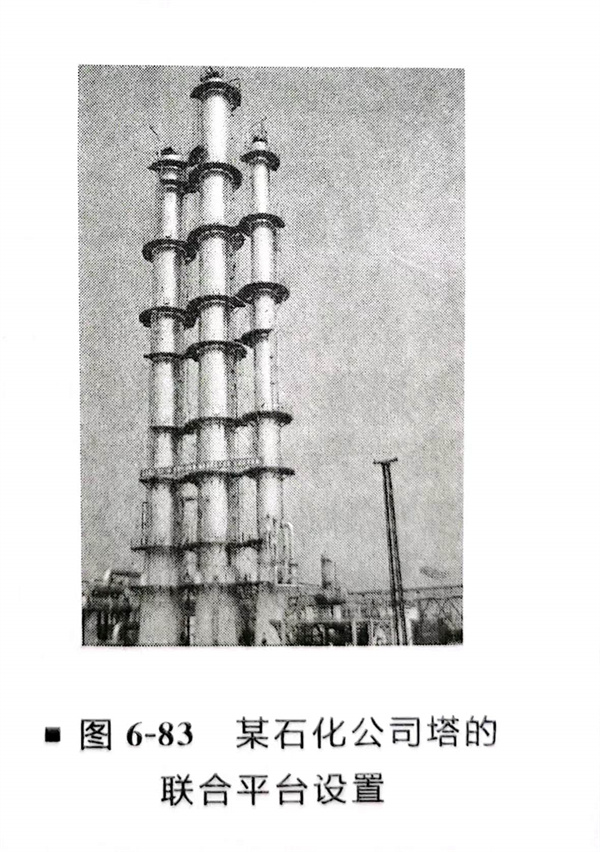 ③. 聯合平(ping)臺應(ying)考慮各塔(ta)、架之間的(de)熱脹及(ji)其移動因素,留有縫(feng)隙,加入(ru)適(shi)當的(de)銷子。塔(ta)身用(yong)法(fa)蘭連接時,應(ying)在法(fa)蘭下側設置平(ping)臺,平(ping)臺面與法(fa)蘭的(de)距離不宜大于1.5m。