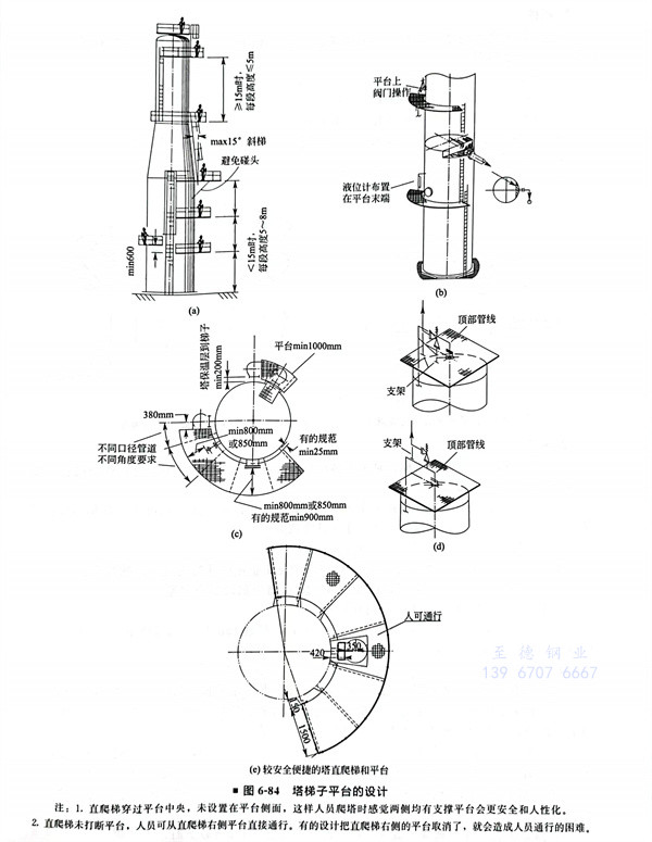 ③. 塔平臺直梯(ti)應自下而上分段錯開布置。