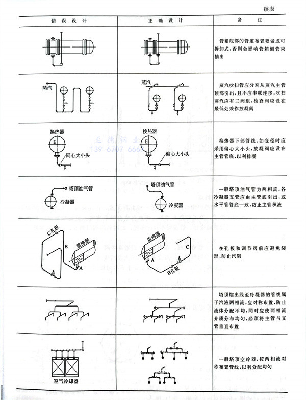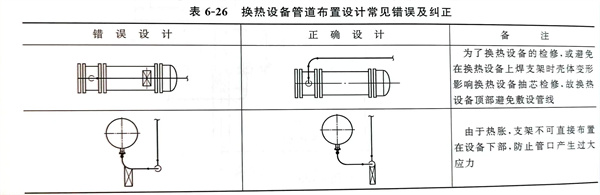 不(bu)銹鋼換熱設備管道(dao)布置設計常見錯誤及糾正見表(biao) 6-26