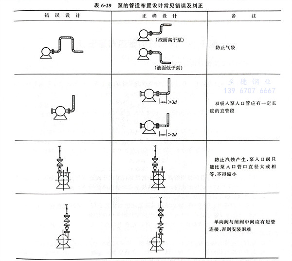 泵的管(guan)道布(bu)置(zhi)設計常見錯誤及糾正見表6-29。