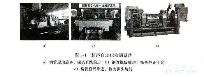 根據不銹鋼管與檢測探頭的相對運動方式,鋼管超聲自動化檢測系統可分為三類:鋼管原地旋轉,探頭直線前進,如圖1-1a所示;鋼管螺旋推進,探頭靜止固定,如圖1-1b所示;鋼管直線推進,檢測探頭旋轉,如圖1-1c所示。三種檢測系統主要根據檢測效率、探頭數量以及檢測系統工藝布局來選擇。第一種占地面積小,檢測通道數少,效率較低,一般應用于不銹鋼管的離線檢測。第二種與第三種檢測效率較高,通道數較多,均需要較為復雜的輸送輥道來驅動不銹(xiu)鋼管運動,兩種方式都廣泛應用于不銹(xiu)鋼管的在線檢測。