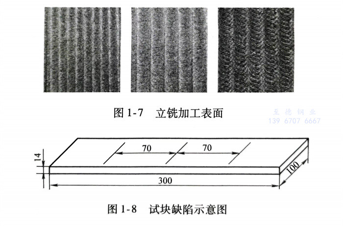 采用Q235碳素結(jie)構鋼制作試(shi)塊(kuai),試(shi)塊(kuai)尺(chi)寸長300mm、寬(kuan)100mm、厚14mm。首先(xian),將三塊(kuai)試(shi)塊(kuai)表(biao)(biao)(biao)面利用飛刀(dao)進(jin)行銑削加工,如圖1-6所(suo)(suo)示,其(qi)表(biao)(biao)(biao)面粗糙(cao)(cao)度(du)值從左到右依次為Ra3.2μm、Ra6.3μm、Ra12.5μm,編(bian)(bian)號(hao)(hao)1、2、3。然(ran)后,利用立銑加工另(ling)外三塊(kuai)試(shi)塊(kuai)表(biao)(biao)(biao)面,如圖1-7所(suo)(suo)示,其(qi)表(biao)(biao)(biao)面粗糙(cao)(cao)度(du)值從左到右依次為 Ra3.2μm、Ra6.3μm、Ra12.5μm,編(bian)(bian)號(hao)(hao)4、5、6。另(ling)外,再(zai)采用平磨加工一塊(kuai)試(shi)塊(kuai)表(biao)(biao)(biao)面,此(ci)種(zhong)方式獲得的(de)表(biao)(biao)(biao)面質量較(jiao)好,其(qi)表(biao)(biao)(biao)面粗糙(cao)(cao)度(du)值為Ra0.2μm,編(bian)(bian)號(hao)(hao)7。所(suo)(suo)有(you)試(shi)塊(kuai)表(biao)(biao)(biao)面均刻有(you)一組寬(kuan)度(du)為20μm,深度(du)不同(tong)的(de)人工線狀缺陷(xian),尺(chi)寸如圖1-8所(suo)(suo)示,從左到右深度(du)依次為20μm、45μm、70μm,相鄰缺陷(xian)的(de)間距為70mm。