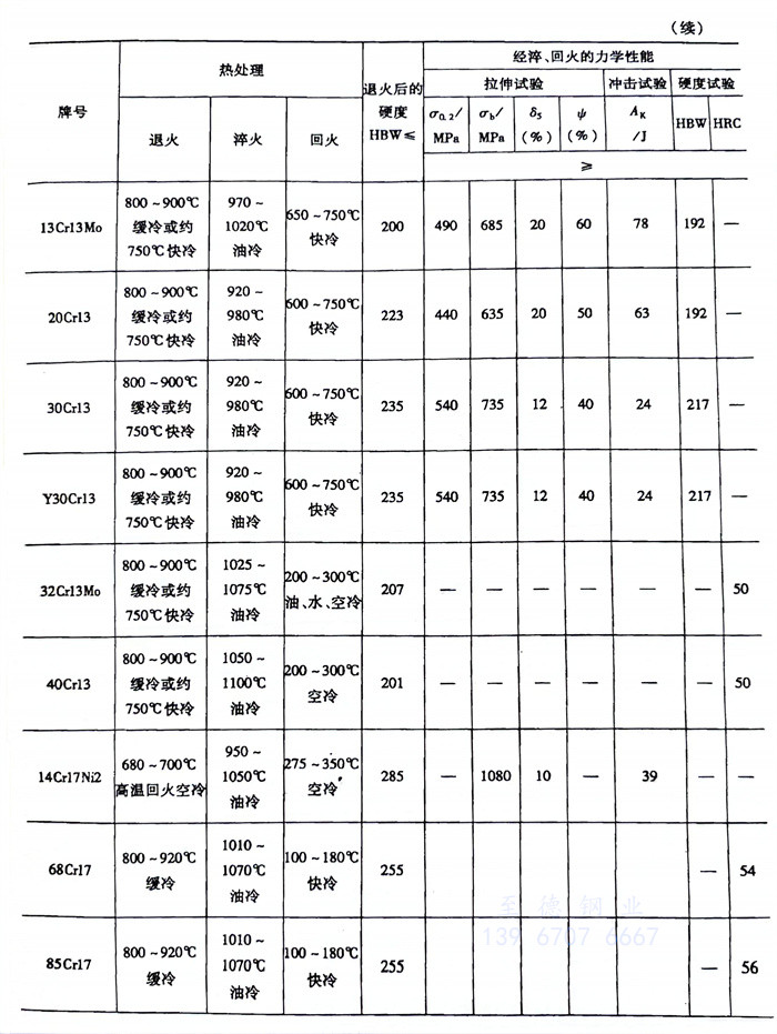 30Cr13、40Cr13鋼(gang)(gang)因碳含量(liang)較高,較12Cr13、20Cr13鋼(gang)(gang)具(ju)有更高的(de)強(qiang)(qiang)度、硬度和(he)更好(hao)的(de)淬透(tou)性(xing)(xing),在(zai)室溫、稀硝(xiao)酸和(he)弱的(de)有機酸中具(ju)有一定(ding)的(de)耐(nai)(nai)蝕(shi)(shi)性(xing)(xing),但韌(ren)性(xing)(xing)和(he)耐(nai)(nai)蝕(shi)(shi)性(xing)(xing)不及12Cr13和(he)20Cr13鋼(gang)(gang)。主要用(yong)(yong)于(yu)高強(qiang)(qiang)度部件,以(yi)(yi)及承(cheng)受高應力載荷(he)并在(zai)一定(ding)腐蝕(shi)(shi)介質(zhi)條件下(xia)的(de)磨損(sun)件,如(ru)300℃以(yi)(yi)下(xia)工作的(de)刀具(ju)、彈簧,400℃以(yi)(yi)下(xia)工作的(de)軸、軸承(cheng)、外(wai)科醫療器具(ju)和(he)模具(ju)等。該類鋼(gang)(gang)焊接性(xing)(xing)差,通常不能用(yong)(yong)于(yu)制造焊接部件。