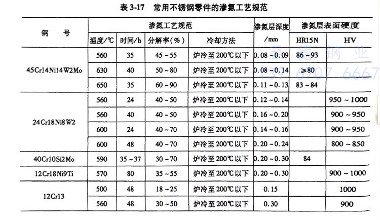 常(chang)用的不銹(xiu)鋼零件的滲氮工(gong)藝規范見表3-17。
