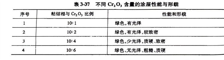 由表可見,隨著Cr2O3量的增加,涂層的玻璃光澤逐漸減少,綠色加深,但燒成后比較致密、完整。涂層保護性能良好,各種涂料在1000℃基本沒有揮發,保證了涂層的使用壽命。
