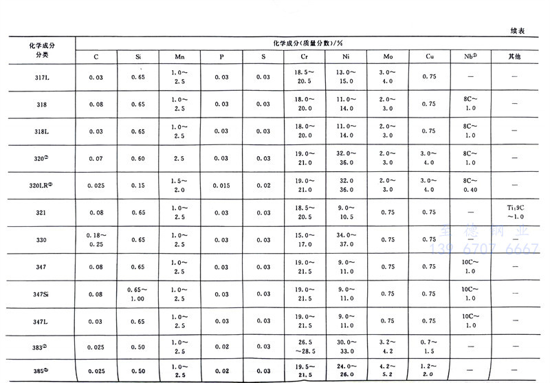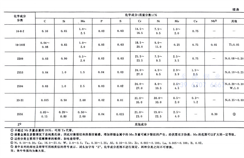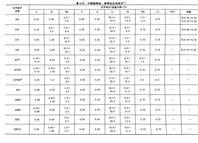 GB/T 29713-2013規定(ding)許多焊(han)絲或焊(han)帶型號的(de)化學元素含量(liang)與(yu)YB/T 5092-2005《焊(han)接(jie)用不銹鋼焊(han)絲》中的(de)焊(han)絲牌(pai)號的(de)化學元素含量(liang)基本一致。它們之間的(de)對應關系見表2-21。