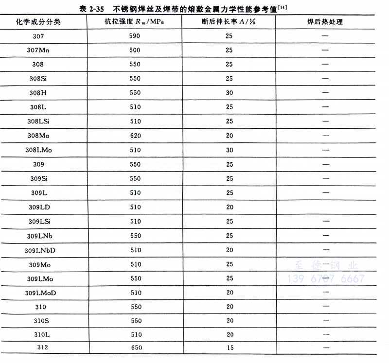 焊(han)絲(si)及焊(han)帶的熔敷金屬(shu)力學性能參考值見表2-35。