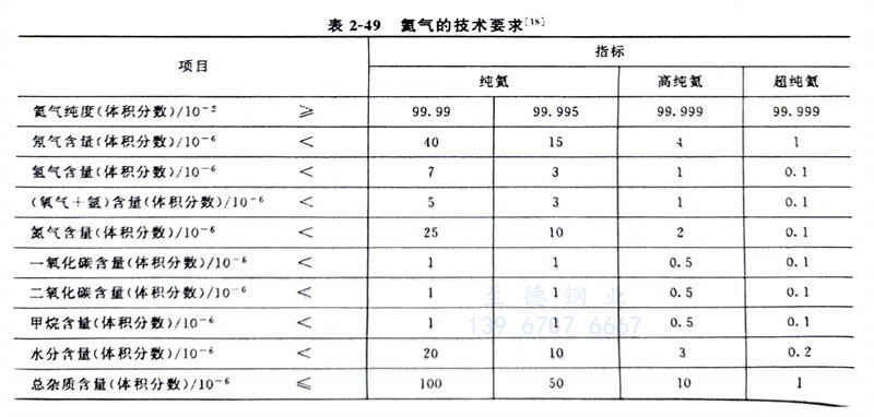 由于氦氣價(jia)格昂貴,所以應用(yong)受到限制(zhi)。氦氣的技術要求(qiu)見表2-49。