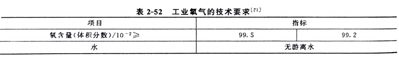 工業氧氣的技術要求見(jian)表(biao)2-52。