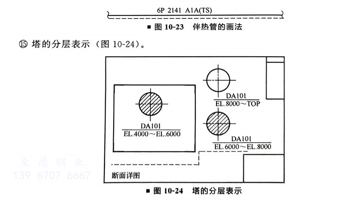 當(dang)塔的斷面表示在(zai)平(ping)面圖的接(jie)續線(xian)以外出時,豎向布置時以較(jiao)高(gao)標(biao)高(gao)應從高(gao)至低,橫向布置時應從左至右(you)的順序布置。