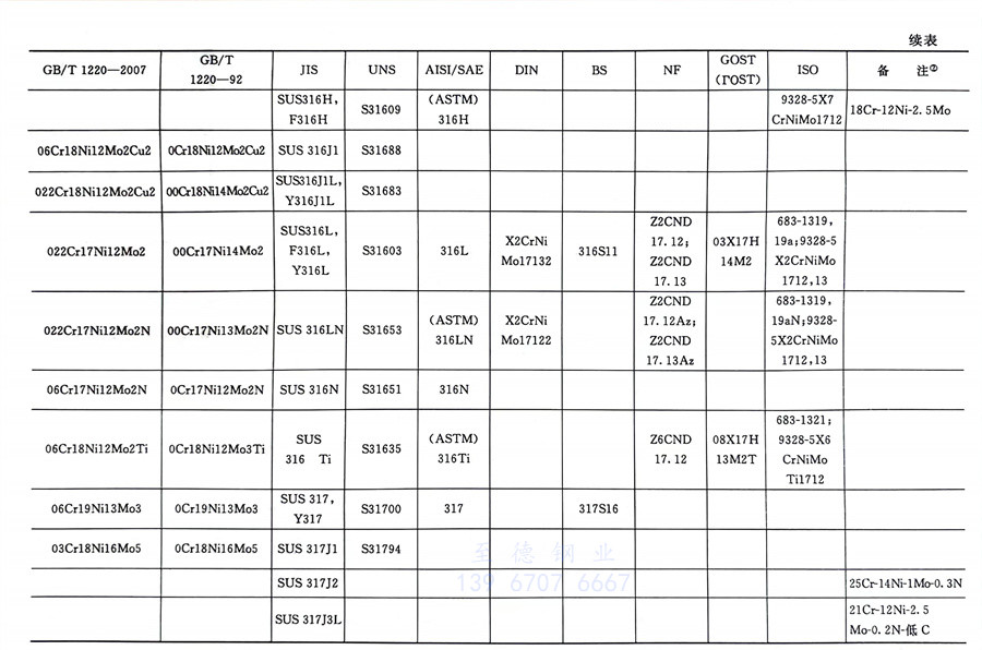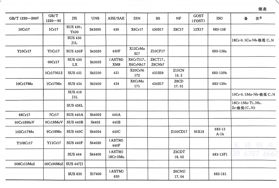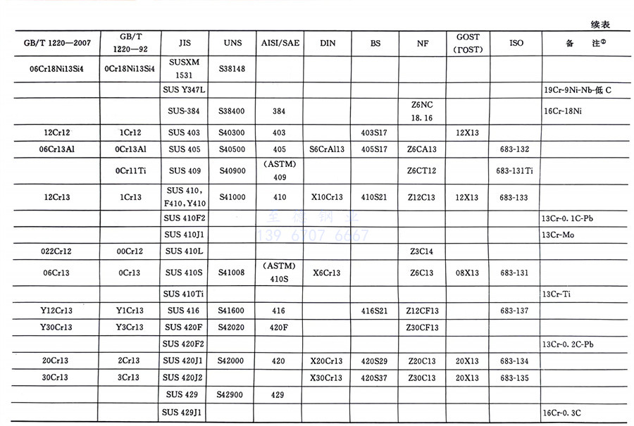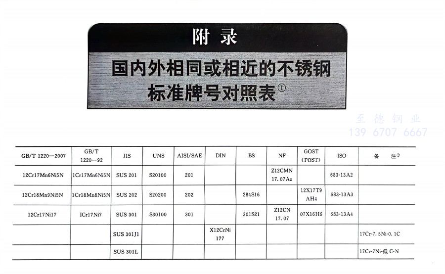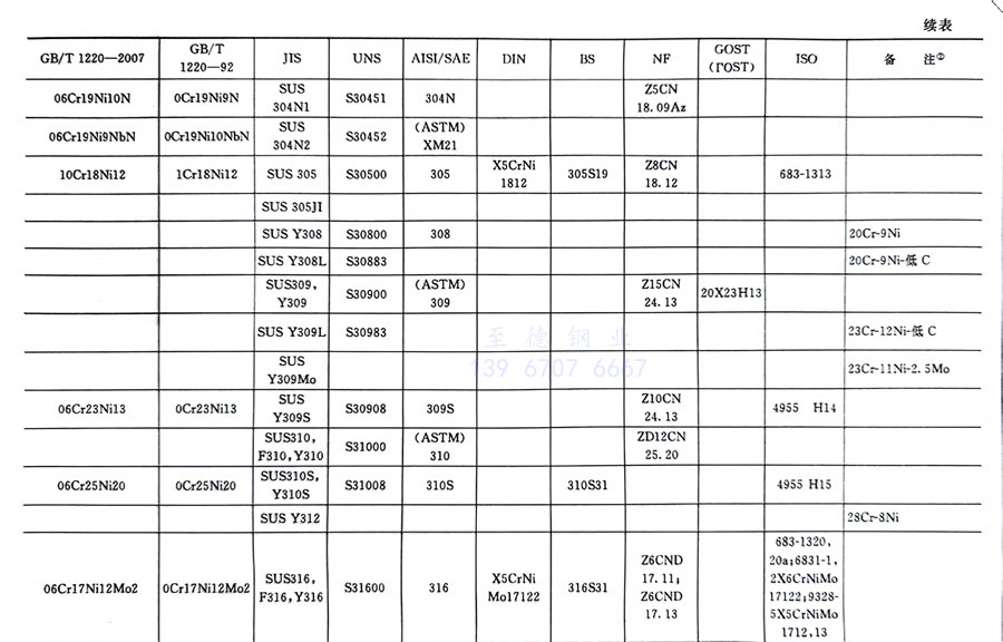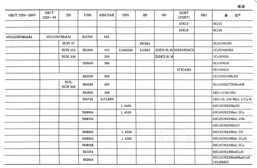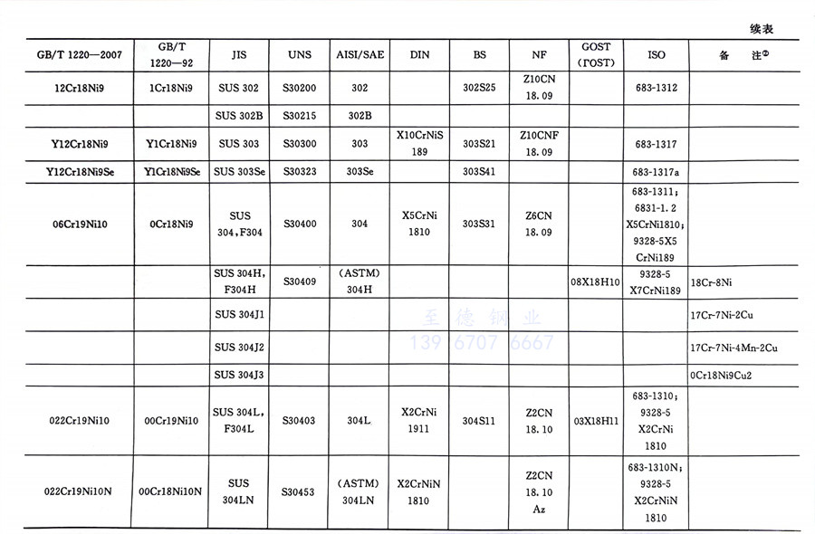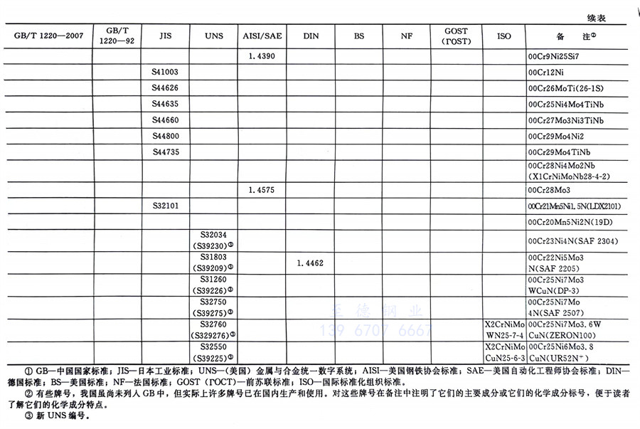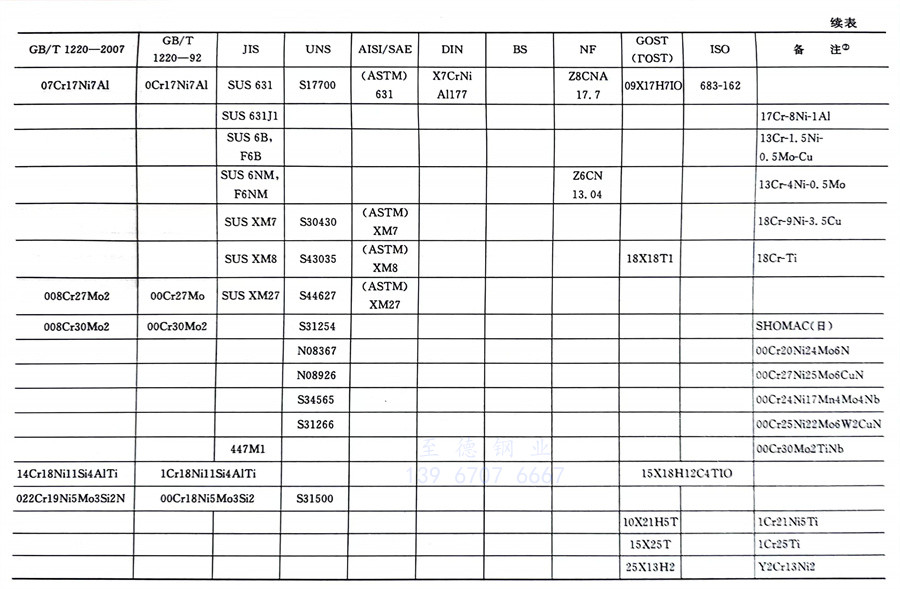 國內外相同或相近的不銹鋼(gang)標準牌號對照表(國標GB、日標JIS、美標UNS,SAE,AISI,ASME、德標DIN、英標BS、法標NF、俄標GOST、國際標準ISO)