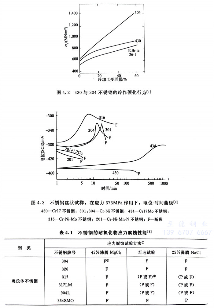 有優良的耐全面(mian)腐(fu)蝕(shi)(shi)和耐各(ge)種(zhong)局部腐(fu)蝕(shi)(shi)的性能(neng)(neng),特(te)別是耐氯(lv)化物(wu)應力腐(fu)蝕(shi)(shi)性能(neng)(neng)優異,在氯(lv)化物(wu)的一些(xie)試驗結果見圖4.3、表4.1和表4.2。在實(shi)際應用中尚未見氯(lv)化物(wu)應力腐(fu)蝕(shi)(shi)斷裂實(shi)例。