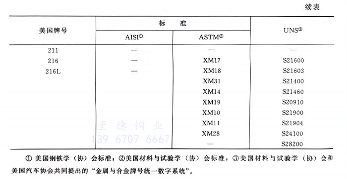 以錳、氮代鎳的(AISI 200系)鉻錳奧氏體(ti)不銹鋼,美國AISI標準中僅有三個牌號,即AISI 201,202和205,但ASTM和UNS中則列入了更多的牌號,見表5.20。為了節鎳,AISI 201和202所對應著代替鉻鎳奧氏體不銹鋼(gang)的牌號是 AISI 301和302。