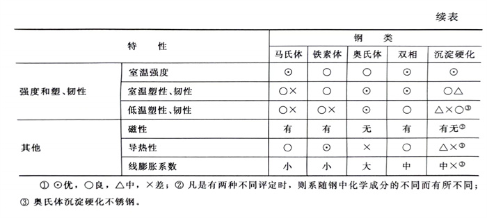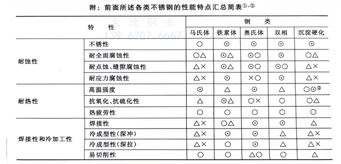 下面的附表系前面所述(shu)五大類不銹鋼性能(neng)特點(dian)的簡要(yao)匯總,供讀(du)者參考。